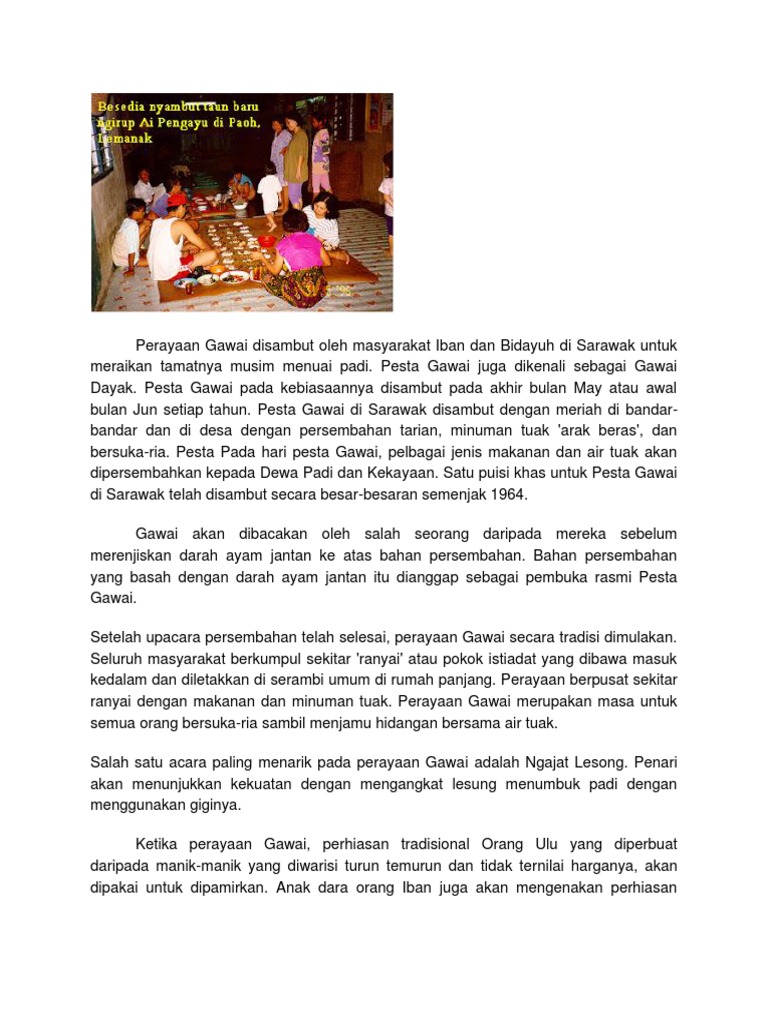 Perayaan Gawai Disambut Oleh Masyarakat Iban Dan Bidayuh Di Sarawak Untuk Meraikan Tamatnya Musim Menuai Padi Pdf